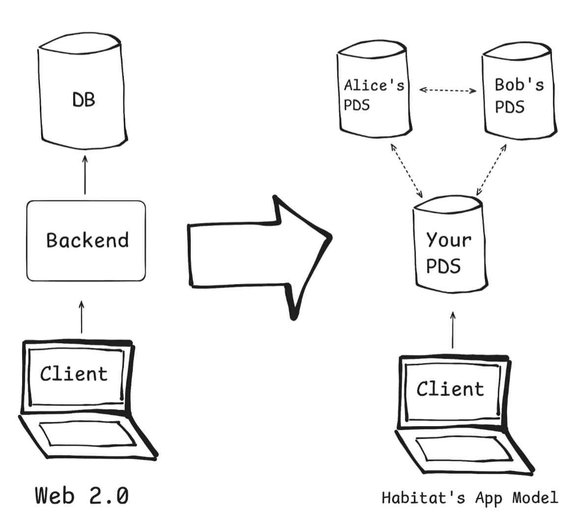 Now we’ve seen that AppViews expose both privacy risk and unavoidable complexity to the user. Can we ignore them entirely? Well, if AppViews don’t exist, all requests for data must go directly to the PDS. In essence, the PDS will be our database.