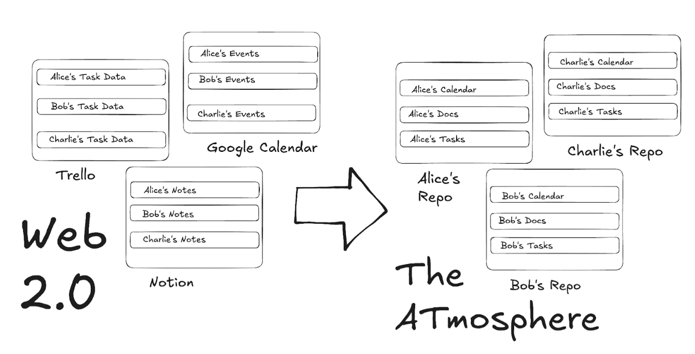 When Daniel says that “apps need to see the data”, he is specifically referring to the component of the ATProtocol stack known as an AppView. In the public data model, these are backend servers that can aggregate and index the data that lives on peoples’ PDS, by consuming it all through the Firehose and creating their own “copy” of all that data, in whatever format desired. Because the data is public anyway, AppViews can do arbitrary things with the data, and actually need to in order to provide certain types of user experiences, such as a recommendation feed which can pull posts from anyone on a platform.